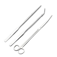 เครื่องมือทำความสะอาดสำหรับบำรุงรักษาตู้ปลา3ชิ้น/เซ็ตทำจากสเตนเลสแหนบโค้งตรงกรรไกรโค้งงอ